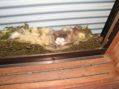 2006年5月1日 雨戸と窓の隙間に巣が作られた。