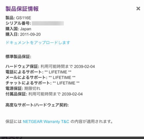 JGS524E GBTスイッチとGS308Eを購入後に「Unlimited Lifetime Hardware Warranty」対象製品だった事を思い出した。 このProgramは、2007年11月1日から2019年9月30日までに購入されたProSafe製品が対象。 「2011年9月19日購入のGS116E」は、対象(購入証明は…